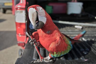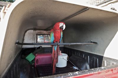 Sam is a shepherdess and her parrot likes to ride along in the Hilux too