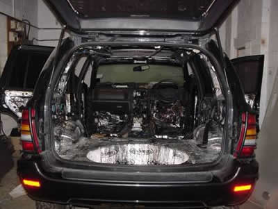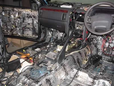 In the autumn of 2003 we started ripping a 1 year old Grand Cherokee WJ apart, to install what at the time was one of the top In Car Entertainment systems in the world. We had never gotten involved in this area before, so it was to prove to be an interesting challenge. Nick (the owner) had given us a free hand to come up with a spec that he would enjoy, money wasn’t much of an issue within reason, quality of sound was paramount and it had to be a good quality, stylish installation that he would be proud to show off. The features were to include the best quality sound system on the market, a DVD player with 3 screens and surround sound, a navigation system, terrestrial TV and a Playstation 2 / X Box. We spent a while shopping around before settling on the Alpine F1 status equipment. The reason being that they had all of the requirements covered in a quality package that would all work well together. We initiated some conversations with Alpine technical in Milton Keynes, and started to put a spec together to meet our requirements. After some lengthy discussions, the spec chosen was as follows: