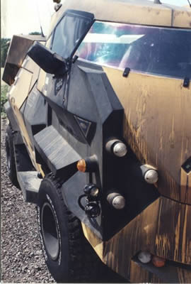 I then got a phone call out of the blue from Ian Mullinghani asking if I could make 4 of them road legal so they could do the film premiere at Leicester Square in London and then go on the road as promotional vehicles for shows etc throughout the summer. Always looking for a new challenge I agreed. We then spent the next few weeks with a copy of the vehicle road regulations bible, to see exactly what we would have to do to make them road worthy, and had several discussions with the DVLA and the Police to get definite interpretations of the law. Although it is said all publicity is good publicity, Judge Dredd getting busted at the premiere for having un-roadworthy vehicles would probably have not Pleased Land Rover.