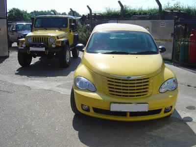 His wife, Jane, also has a matching PT cruiser to complete the ensemble. Very nice!
