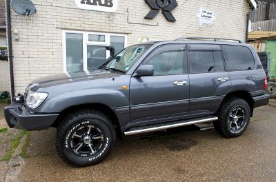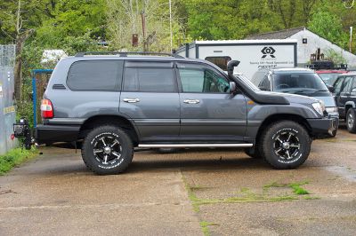 Some jazzy wheels were needed to finish it off. There is not a huge selection available for the 100 series. Seth eventually opted for the Mullins 8x16 "Monster" wheels in black. These in turn have been fitted with 265x75x16 BF Goodrich All Terrains.
