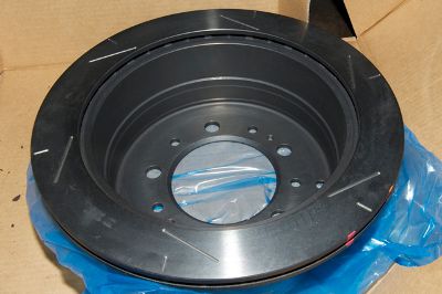 With the go faster soundtrack encouraging you to go faster (when not towing!) and the weight of the Airstream caravans shoving it along, the decision was taken to upgrade the brakes. We fitted DBA vented, slotted and drilled discs on the front with Hawk competition pads and EBA vented and slotted discs on the rear with Hawk competition pads. The overall drivng, handling and stopping package works very nicely, despite the extra weight