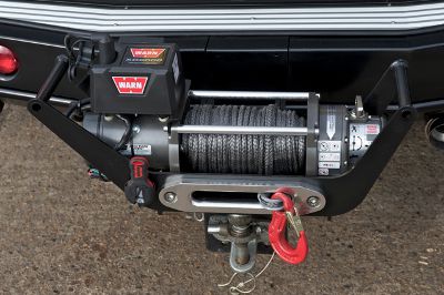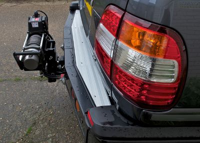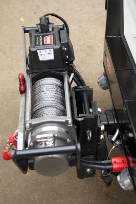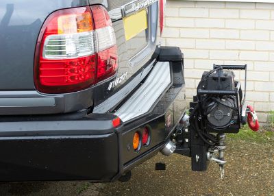 Seth uses this fabulous brute to help erect Silver Stage’s spectacular structures, as seen at most big events. The large hoop like frames that hold the roof up are winched up into the correct position. To do this, we have equipped it with a Warn XD9000 at each end. The front winch is mounted in an ARB Safari bumper and the rear is one of our demountable custom mounts that fit on to the Dixon Bate adjustable tow hitch. To finish off the rear it also has an ARB step bumper. To power this lot, we fitted a pair of Odyssey batteries and both winches are operated with Warn wireless controllers. To make them more user friendly, the decision was taken to dispense with the Wire ropes in favour of the much friendlier and lighter Dynaline ropes.