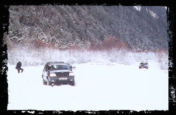 DAY 1: We had decided in our strategy meeting Wednesday night that the Ancelle route would probably be the best introduction to the event for the journalists. This route has some beautiful snowfields with fantastic vistas overlooking the valley. Having made the journalists go through the snow chain rite of passage we then went up to the top and started on one of the most scenic routes of the event. The decision to go to Ancelle on the first day had sound reasoning behind it. We figured that the Grand Cherokee is a big vehicle and the stakes were high in the body damage area. Especially when you consider that no one driving them had done so before off-road, yet alone on ice and snow! At least we could get some good pictures of the vehicles before they got damaged. Our fears would prove to be unfounded. A combination of care and good driving skills by the Journalists meant all of the vehicles emerged at the end of the event totally unscathed. Well Done guys!