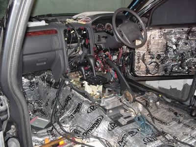 In the autumn of 2003 we started ripping a 1 year old Grand Cherokee WJ apart, to install what at the time was one of the top In Car Entertainment systems in the world. We had never gotten involved in this area before, so it was to prove to be an interesting challenge. Nick (the owner) had given us a free hand to come up with a spec that he would enjoy, money wasn’t much of an issue within reason, quality of sound was paramount and it had to be a good quality, stylish installation that he would be proud to show off. The features were to include the best quality sound system on the market, a DVD player with 3 screens and surround sound, a navigation system, terrestrial TV and a Playstation 2 / X Box. We spent a while shopping around before settling on the Alpine F1 status equipment. The reason being that they had all of the requirements covered in a quality package that would all work well together. We initiated some conversations with Alpine technical in Milton Keynes, and started to put a spec together to meet our requirements. After some lengthy discussions, the spec chosen was as follows: