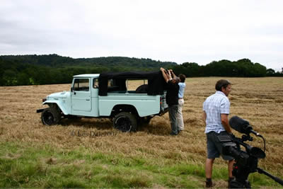 Eventually the day came to road test it on the way to the MOT. It passed with flying colours and we were able to get it taxed and give it a proper run round. It drove beautifully, a real joy! Final details were done and it was taken over for its last filming day. The excellent, custom made, Exmoor canvas arrived that morning, so it was fitted whilst they were setting up to film. The overall effect with the black hood on was great. The pale blue and black really compliment each other; it is a real eye catcher. With the filming finished and a shakedown, followed by a check over, the vehicle was then handed over to its owner and since then Paul has been using it as a regular car and is steadily clocking up the miles with a big grin on his face. Now all we need to do is to finish off the 40 series we have been building for him with an HJ60 6 cylinder diesel and 5-speed gearbox and he will be all set for Africa!