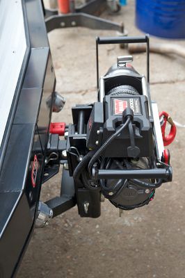 Seth uses this fabulous brute to help erect Silver Stage’s spectacular structures, as seen at most big events. The large hoop like frames that hold the roof up are winched up into the correct position. To do this, we have equipped it with a Warn XD9000 at each end. The front winch is mounted in an ARB Safari bumper and the rear is one of our demountable custom mounts that fit on to the Dixon Bate adjustable tow hitch. To finish off the rear it also has an ARB step bumper. To power this lot, we fitted a pair of Odyssey batteries and both winches are operated with Warn wireless controllers. To make them more user friendly, the decision was taken to dispense with the Wire ropes in favour of the much friendlier and lighter Dynaline ropes.